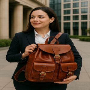 Luxury Full-Grain Leather Backpack – Minimalist Elegant, Laptop & Office Bag