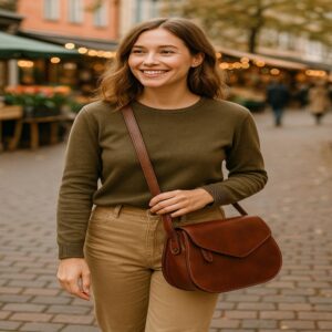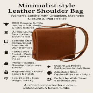 Full-Grain Calfskin Leather Satchel: Italian Handcrafted Crossbody Bag