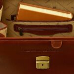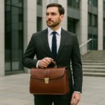 “Luxury full-grain leather briefcase for men, office and business travel, handcrafted Italian leather.”