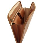 Genuine full-grain calfskin leather portfolio bag with organized interior slots, slim minimalist design, and elegant professional finish
