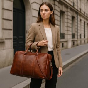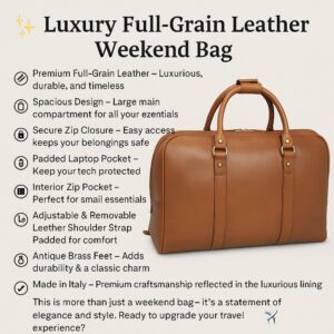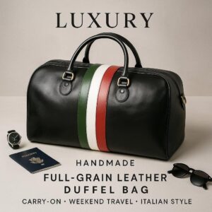 Luxury full-grain calfskin leather duffel bag for business, travel, and everyday use