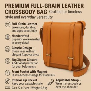 👜 Luxury Full-Grain Calfskin Leather Shoulder Bag – Compact, Stylish & Functional
