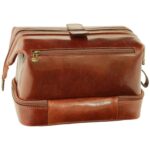 👜 Luxury Full-Grain Leather Cosmetic & Toiletry Bag – Compact Travel Organizer