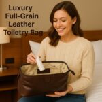 Elevate your travel and daily beauty routine with this handmade full-grain calfskin leather toiletry bag, crafted for women and style-conscious travelers. Perfect for cosmetics, toiletries, grooming tools, or jewelry, it combines luxury, practicality, and timeless elegance.