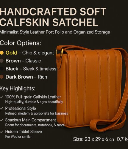 Handcrafted Soft Calfskin Satchel – Minimalist Leather Portfolio with Adjustable Strap